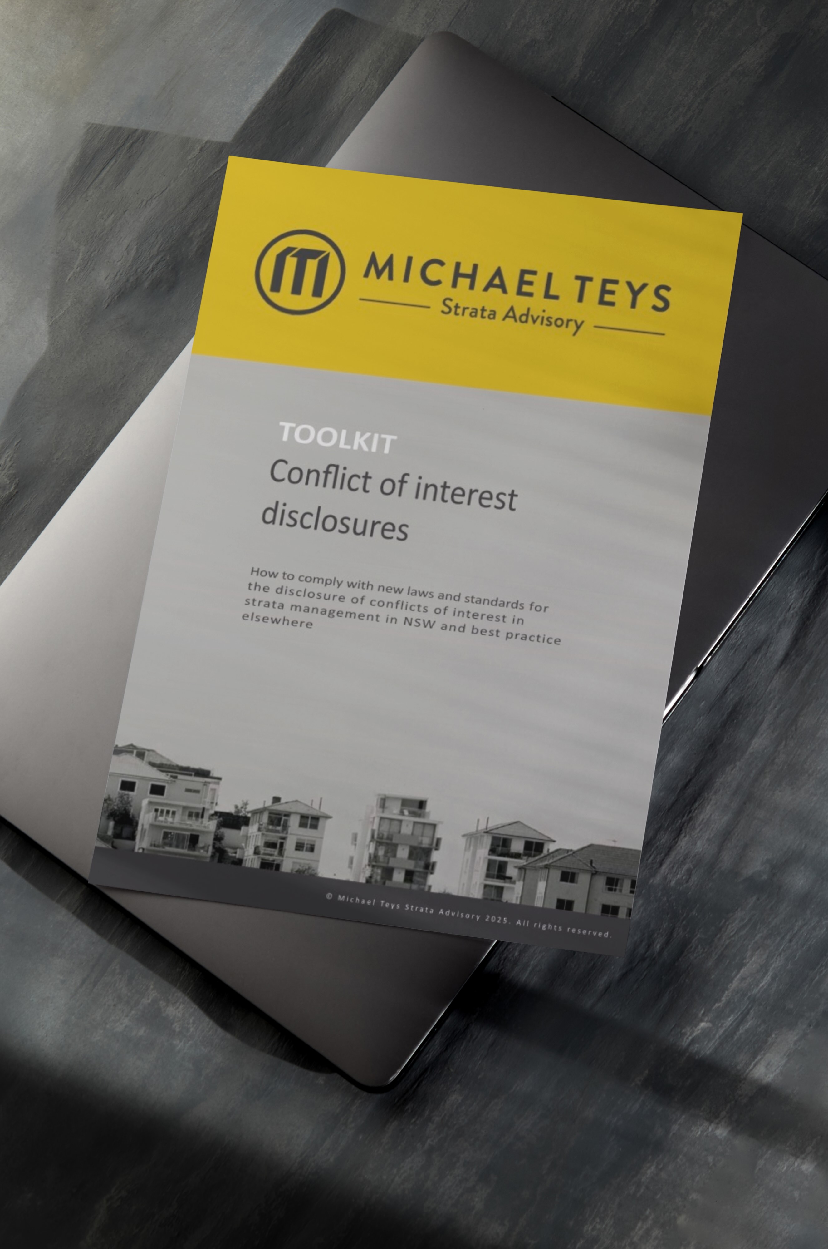 This toolkit has been prepared to help strata management agencies navigate these changes. This publication is not about the rights and wrongs of the various practices. That is for another time and place. This is about what to do now to comply with the laws and new standards.